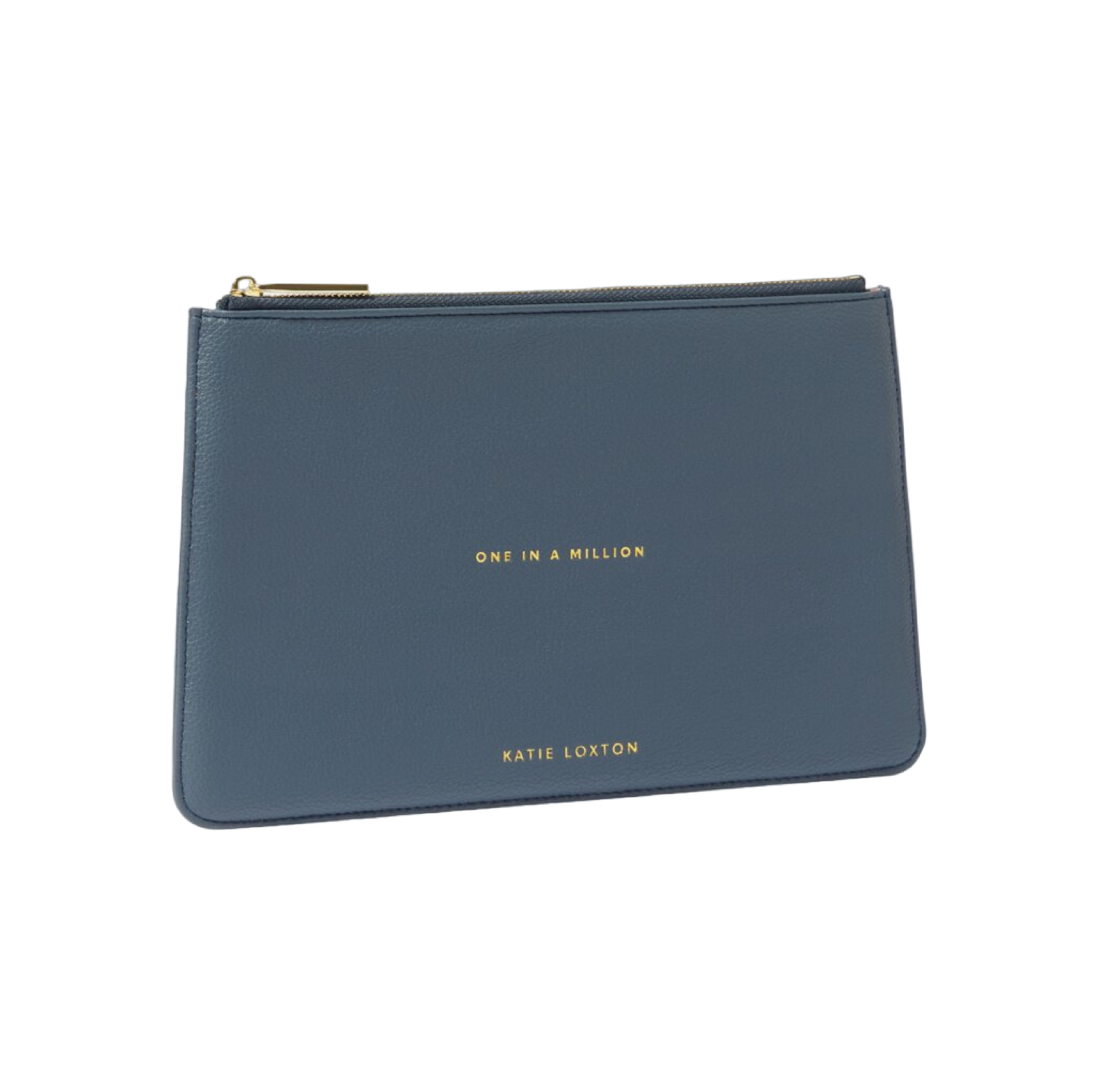Katie Loxton’s sentiment pouch is giftable by design. Crafted in vegan leather coloured light navy, it features a chic tapered body, roomy interior and sleek gold-tone hardware to match. Finished with a gold stamped sentiment on its front - Loxton’s is the go-to gift for someone special.